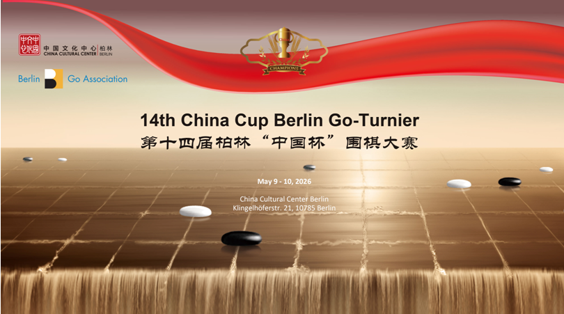 Das Go-Turnier „China Cup Berlin“ ist eine renommierte Kulturmarke des Chinesischen Kulturzentrums Berlin. Seit vielen Jahren bietet es Go-Spielerinnen und -Spielern aus Deutschland und ganz Europa eine Plattform für Begegnung, Austausch und freundschaftlichen Wettstreit. Gleichzeitig trägt es dazu bei, dass immer mehr Menschen die einzigartige Schönheit dieses traditionsreichen Spiels entdecken und lieben lernen. Auch in diesem Jahr veranstaltet das Chinesische Kulturzentrum Berlin gemeinsam mit dem Berliner Go-Verband am 9. und 10. Mai 2026 das 14. Berliner Go-Turnier „China Cup Berlin“, bei dem die besten Spielerinnen und Spieler mit Urkunden und attraktiven Preisen ausgezeichnet werden. Wir laden alle Go-Begeisterten herzlich ein, am Turnier teilzunehmen, als Zuschauerinnen und Zuschauer vorbeizukommen oder sich mit Gleichgesinnten auszutauschen. Lassen Sie uns gemeinsam durch das Spiel neue Freundschaften knüpfen und die faszinierende Welt des Go erleben!