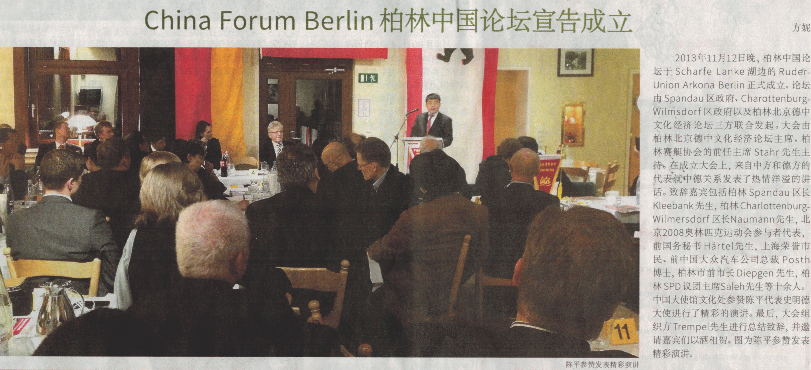 Die Beziehungen zwischen China und Deutschland, Berlin und Beijing sind älter das China Forum Berlin, dessen Träger - Deutsch-Chinesisches Kultur- und Wirtschaftsforum zu Berlin und Beijing e.V. - erst spät gegründet wurde. Nie wollten wir bereits seit langem bestehende Netzwerke oder Vereinigungen ersetzen oder einen Alleinstellungsanspruch kultivieren. Das Interesse unseres chinesischen Gründungsmitglieds in Beijing war es nach der erfolgreichen Zusammenarbeit auf dem Gebiet des Sports, insbesondere der Vorbereitung und Durchführung der olympischen Sommerspiele in Beijing und Qingdao, den Gedanken eines neuen Forums aufzugreifen und im Kaiserlichen Ahnentempel in Beijing die Gründung vorzubereiten. Dort befindet sich noch heute im Seitentrakt der Sitzungssaal, in dem das gemeinsame Gespräch auf fruchtbaren Boden traf. Übrigens ist der Beijinger Bezirk 东城区: Dōngchéng Qū in dem sich der Kaiserpalast befindet, die City Central, mit dem Berliner Bezirk Charlottenburg-Wilmersdorf, der City West, sehr eng verbunden. Ein Grund dafür, dass sowohl Spandau als auch Charlottenburg-Wilmersdorf zu den Mitinitiatoren der Gründung gehören. Den Bezirksbürgermeistern und ihren Vorgängern sei Dank.